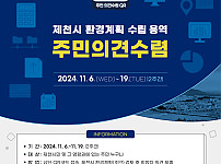 - 2025~2035년 제천시 환경계획 주민 의견 반영-제천시(시장 김창규)는「제천시 환경계획(2025~2035년)수립」초안에 대한 주민의견수렴 절차를11월6일(수)부터19일(화)…