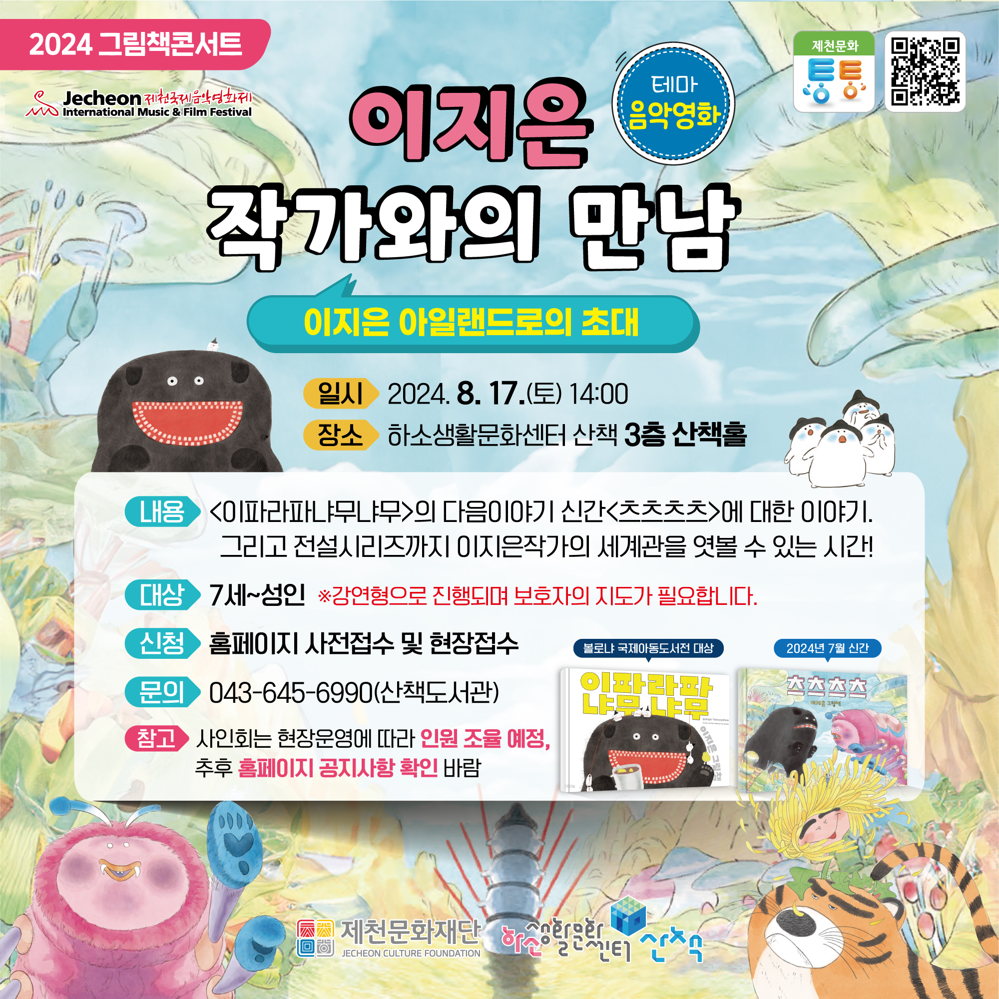 <그림책 콘서트> 관련 자세한 사항은 인터넷 홈페이지 및 SNS, 제천문화통통을 통해 확인할 수 있으며, 산책도서관(☏043-645-6990)으로 문의하면 된다.