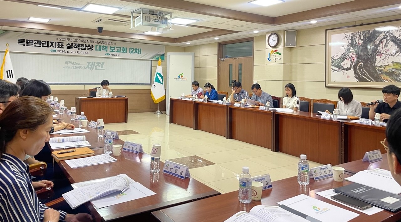 제천시(시장 김창규)는 지난 25일 제천시청에서 2025년(2024년실적) 시군종합평가 대비 특별관리지표 실적향상 대책보고회를 개최하였다.