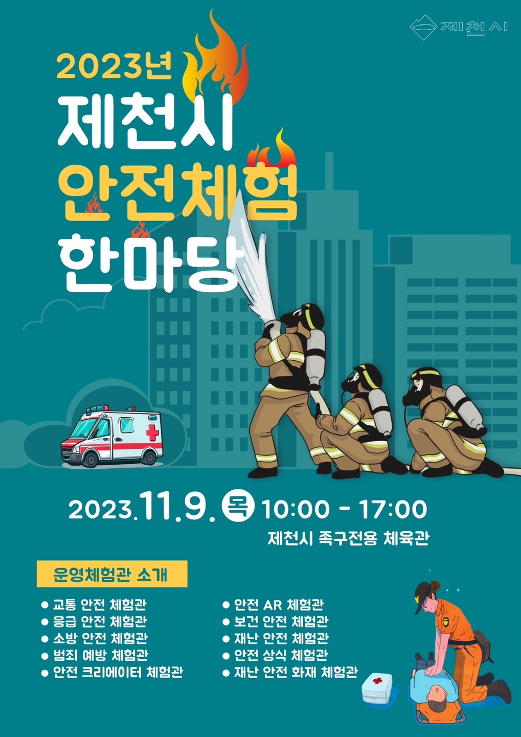 제천시는 9일 의림지 족구전용체육관에서 어린이 및 시민들을 대상으로 제천시 안전체험한마당 행사를 개최한다.