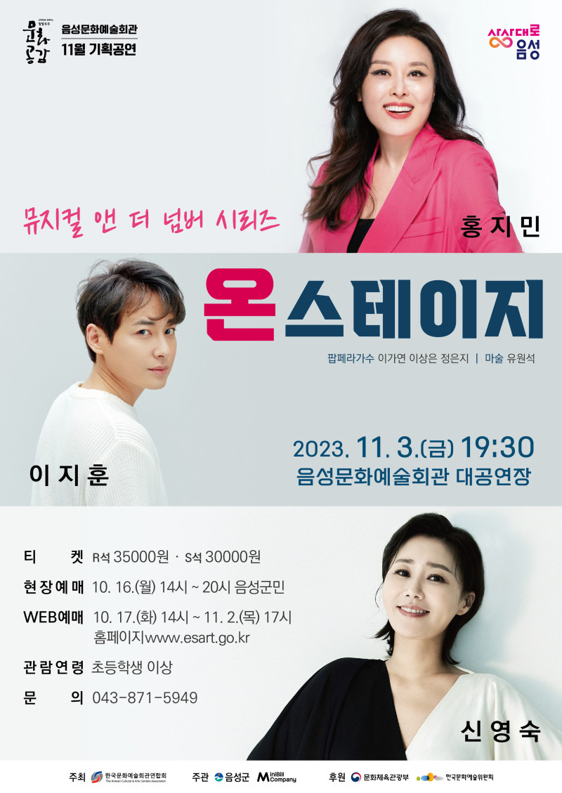 음성군은 오는 11월 3일 금요일 저녁 7시 30분 음성문화예술회관 11월 기획공연으로 뮤지컬 앤 더 넘버 시리즈 <온스테이지>를 진행한다.