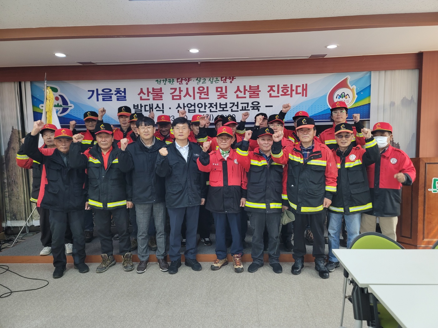 단양군 가곡면은 지난 16일 면사무소 2층 회의실에서 산불예방 감시원 및 진화대 발대식 및 산업안전보건교육을 실시했다고 밝혔다.
